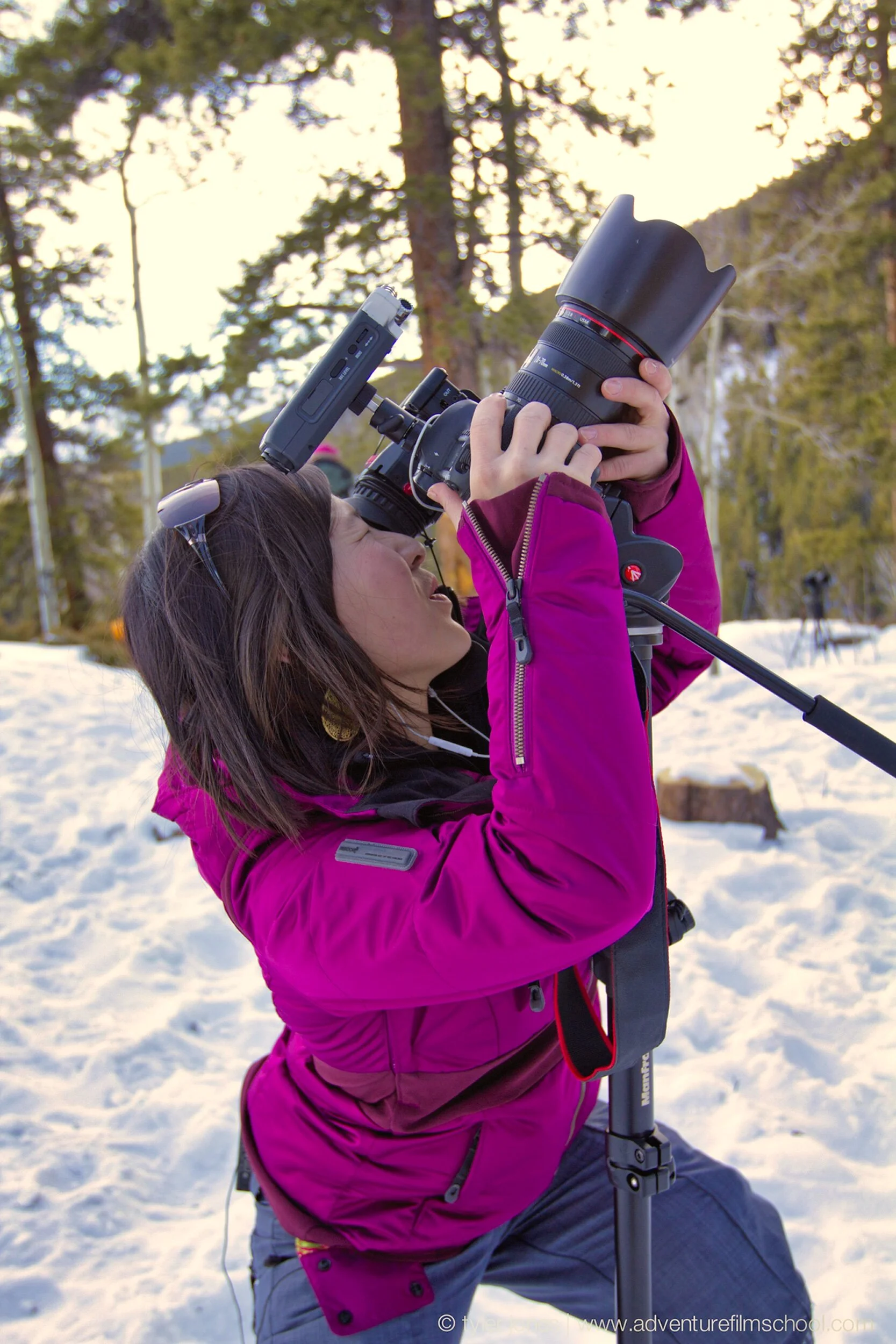 This year's school, is set in the backcountry of the Colorado Rockies, for six aspiring film students this wilderness will soon be the setting for what they all hope will be the film of a lifetime. The students spend the better part of three days in the Colorado backcountry shooting their films before returning to Boulder, Colorado where they edit their films. A day and half later, they present their films to a live audience at Boulder's Boedecker Theater with one student winning the opportunity for a production contract with Outside Television. Helping them achieve their goal of their first adventure film is a trio of accomplished and renowned instructors including award winning film producer/director and 5-time Everest summiter, Michael Brown, Producer, Director, author and longtime National Geographic television executive, Carrie Regan, and renowned big mountain skier, author and Everest summiter, Chris Davenport.